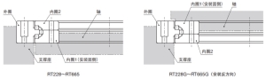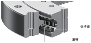 RT型是一种使用滚柱作为滚动体的高刚性产品。滚柱采用适合高速旋转的轴向2列、径向1列排列。本产品可用于内圈旋转和外圈旋转。