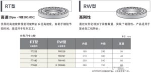 适用于复合加工机转台的高速滚柱轴环RT型和双列角接触滚柱轴环RW型的内外径、宽度尺寸、安装孔位置相同,因此可以根据规格进行选择。
