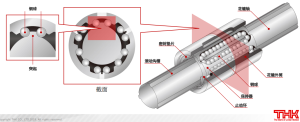 THK滚珠花键构造2026年4月27日/分类: 最新资讯/作者: thkTHK滚珠花键钢球在轴的滚动沟槽上滚动,实现了平滑的直线运动。 由于其结构是钢球分别从左右夹住轴外圆的突起部,因此可传递扭矩。 THK滚珠花键的特点:接近于钢球径的圆弧沟槽形状。与THK直线轴承不同,THK滚珠花键上有滚动沟槽。 由于滚动沟槽是接近于钢球径的圆弧沟槽形状,比点接触的接触面积大。 https://www.thk.org.cn/wp-content/uploads/2019/09/微信图片_20190906152457-300x138.jpg 0 0 thk https://www.thk.org.cn/wp-content/uploads/2019/09/微信图片_20190906152457-300x138.jpg thk2026-04-27 15:05:252026-04-27 15:05:25THK滚珠花键构造